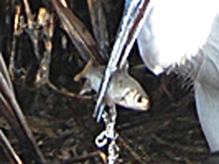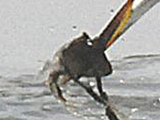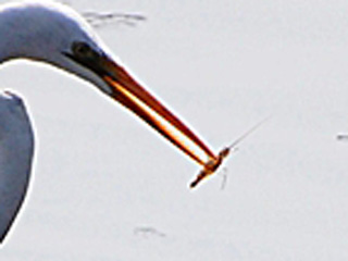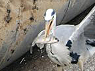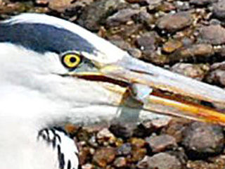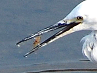 サギ類のエサ取りのシーンを拡大しました。上エビ、中フナ、下の左ハエ、右フナです。