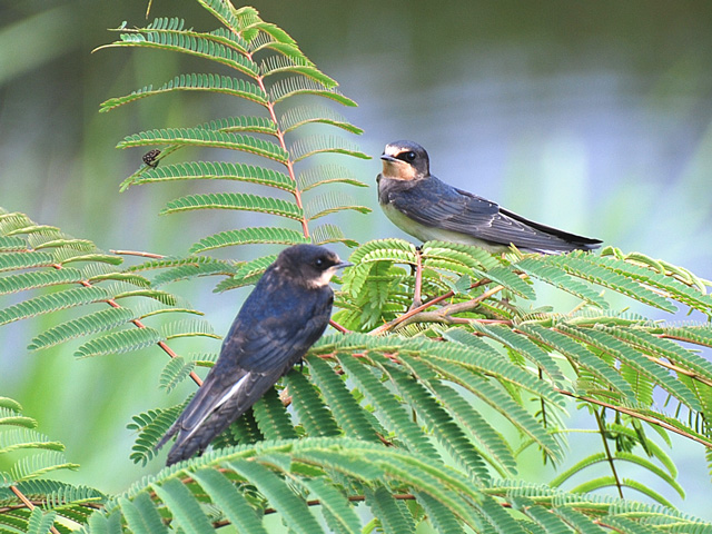 ツバメのようです。木の枝にとまっているのはめずらしいと思います。