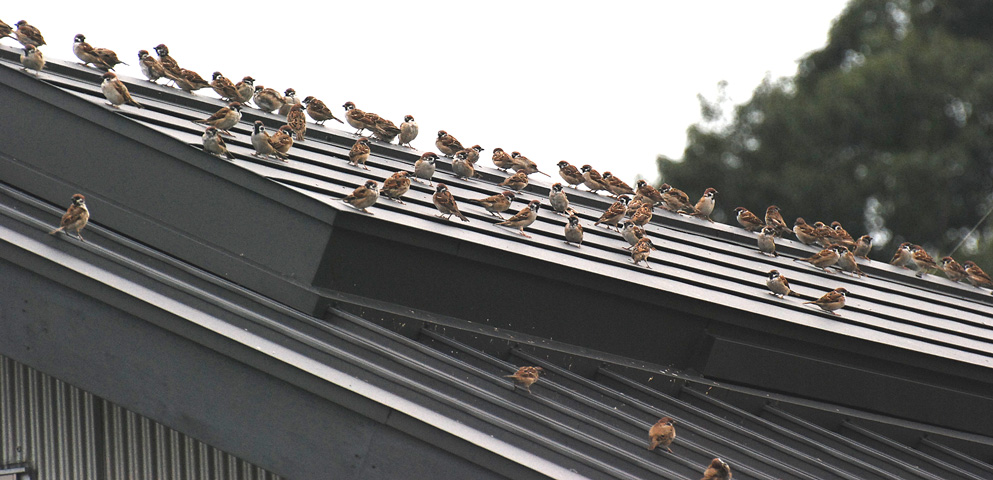 稲穂をついばんでいたスズメの群れ(一部)