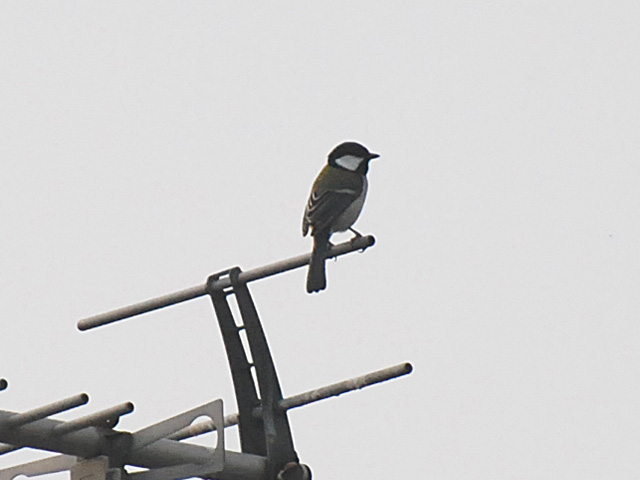 テレビアンテナにとまったシジュウカラ。最近姿を見ていませんでした。