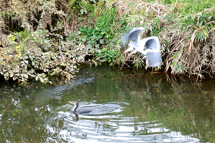 ホントに久しぶりにカワウを見ました。アオサギと一緒でした。