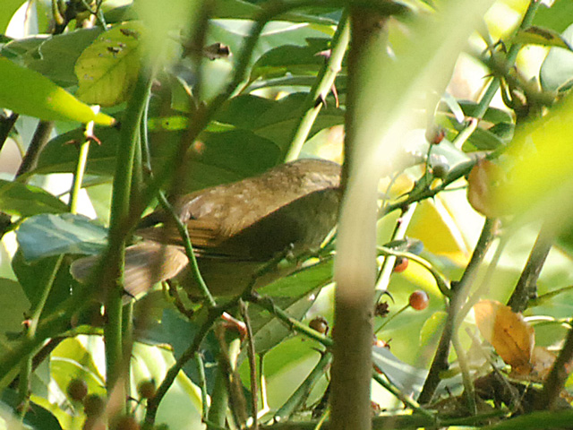 チャチャッ!チャチャッ!と鳴く鳥ですが茂みの中に入って姿が見えません。