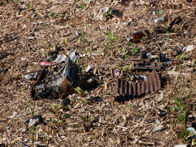 笹が瀬川に捨てられた電化製品のゴミ