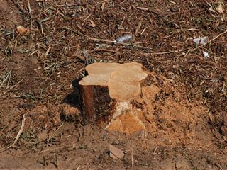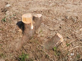 写真でもご覧の通り、かなり大きな木も伐採されてしまいました。一番下の写真の切り株のちょっと上に透明なペットボトルが見えると思いますが、それと見比べてもかなり大きな木だったことは想像できると思います。