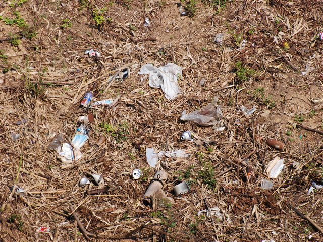 笹が瀬川に捨てられたペットボトルなどのゴミ